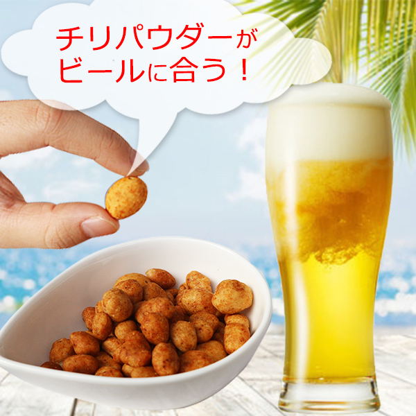 | 原材料名 | 落花生(アメリカ産)、寒梅粉、砂糖、小麦粉、水飴、デキストリン、食塩、チリパウダー、でん粉、オニオンパウダー、パプリカ、黒コショウ、ポークエキス、しょうゆ、チーズパウダー、ガーリック、植物油脂、乳糖、島唐辛子(沖縄県産)、植物たん白、たん白加水分解物/膨張剤、調味料(アミノ酸等)、香料、酸味料、(一部に小麦・落花生・豚肉・卵・大豆・乳成分を含む) |